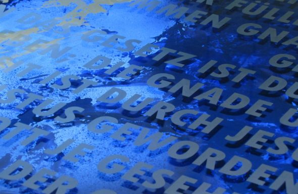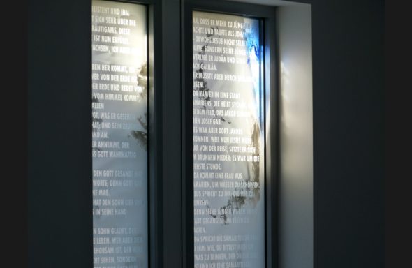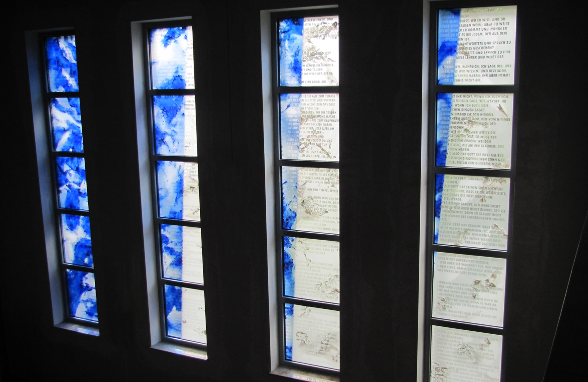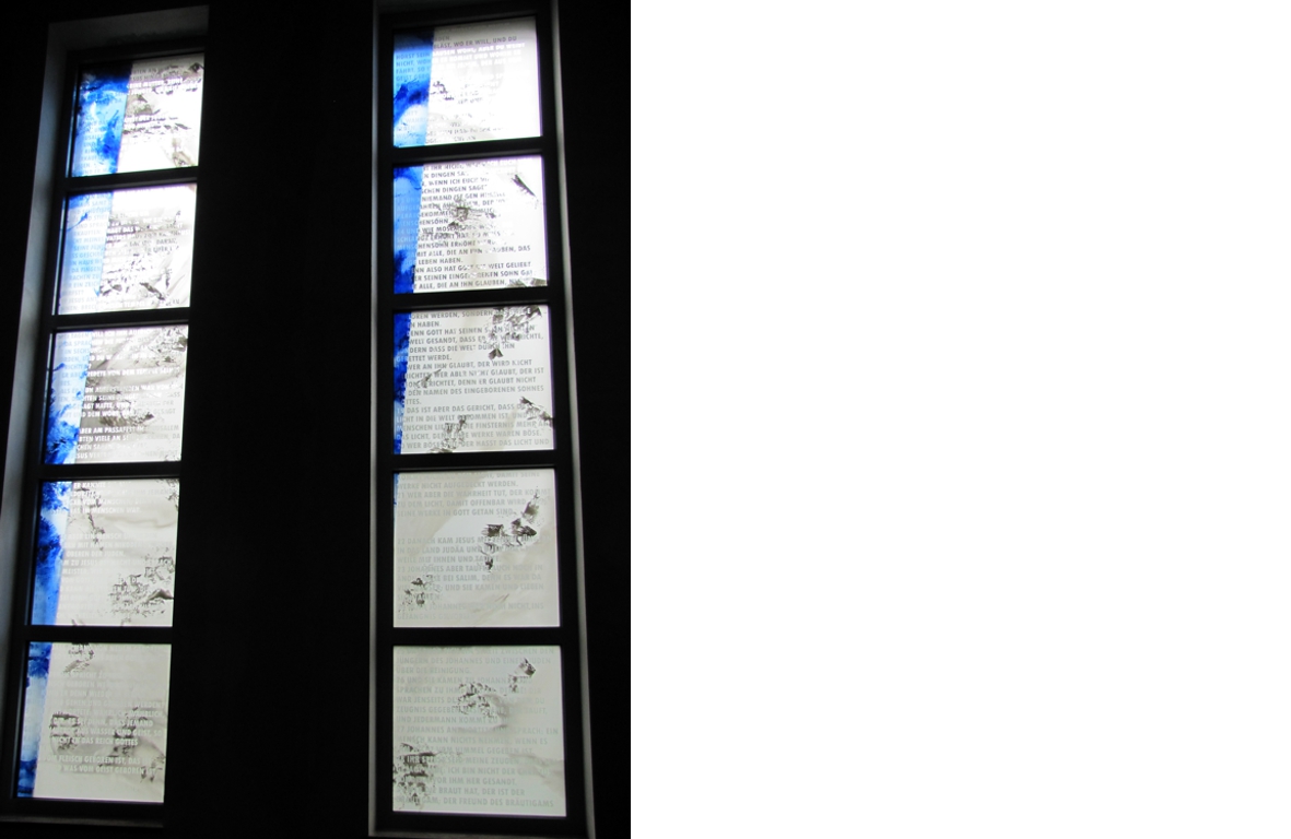 Material: Floatglas mit Malerei und Sandstrahlung
