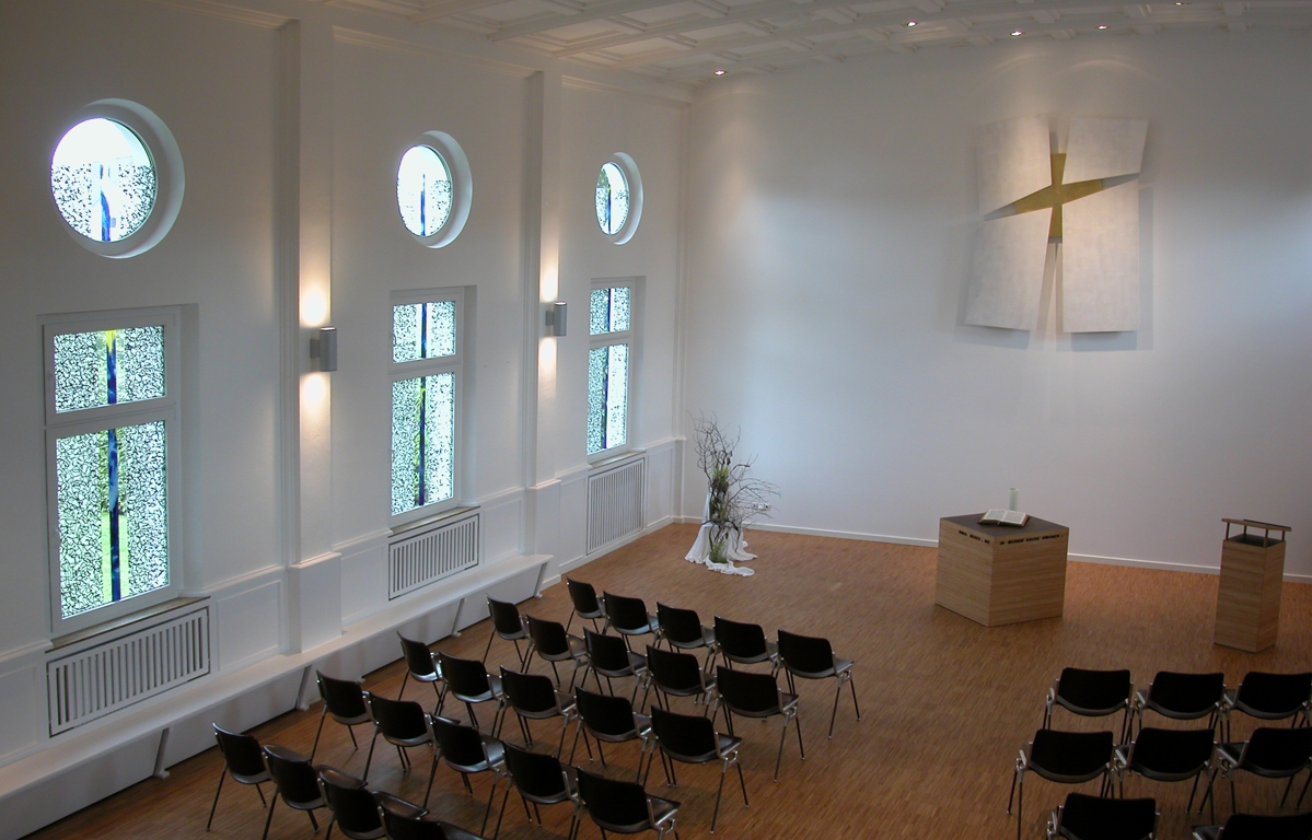 Besonderheiten: Die Kirche wird von der Gemeinde als Gottesdienstraum genutzt und vom zur Gemeinde gehörenden Kindergarten als Raum für Bewegung und Spiele mehrfach wöchentlich genutzt.